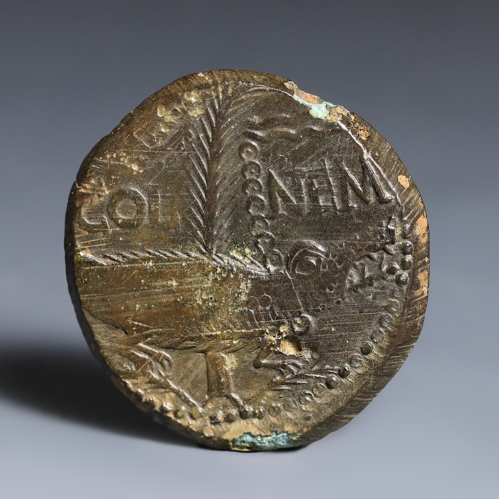 The Roman city of Nemausus, modern day Nîmes, in southern Gaul, became a Roman ‘colonia’ (colony) before 28 BC. Built on the Via Domitia, which connected Rome to Hispania, the region was settled by veterans of Julius Caesar’s campaigns in the Nile. Augustus continued building up this colony, settling many of his own veterans from his campaign in Actium, and ordering the construction of ramparts, gates, temples, and aqueducts. The city issued and circulated a large number of coins with the crocodile reverse, as seen on this coin here. The crocodile, a symbol of Egypt, and perhaps of Cleopatra specifically, being bound to two symbols of Roman victory (the palm and the wreath), clearly celebrate Roman victory over Egypt.