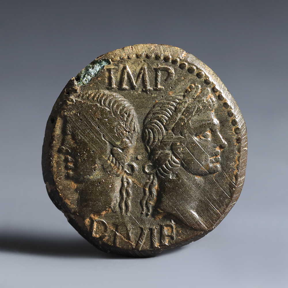 Agrippa (63-12 BC) was Augustus’ deputy, close friend, lieutenant, and leading general. After serving under Julius Caesar during his campaign against Pompey in 46-45 BC, he was sent to Apollonia, in Illyria, to study with the then-Octavian, Caesar’s nephew and adopted son. After Caesar’s assassination and Octavian’s return to Rome, Agrippa helped Octavian levy troops in Campania, and it is around this time that Agrippa was appointed to the tribune of the plebs, bringing him into the Senate. He likely fought alongside Octavian and Antony in 42BC, and continued to play a major role in Octavian’s campaigns, most importantly in the Battle of Actium, where his unexpected arrival turned the tides of victory in Octavian’s favour. Octavian then married him to his niece Claudia Marcella Major in 28 BC, and later, in 21 BC, to his daughter, Julia the Elder. Their union produced five children, including Agrippina the Elder, the mother to Caligula.