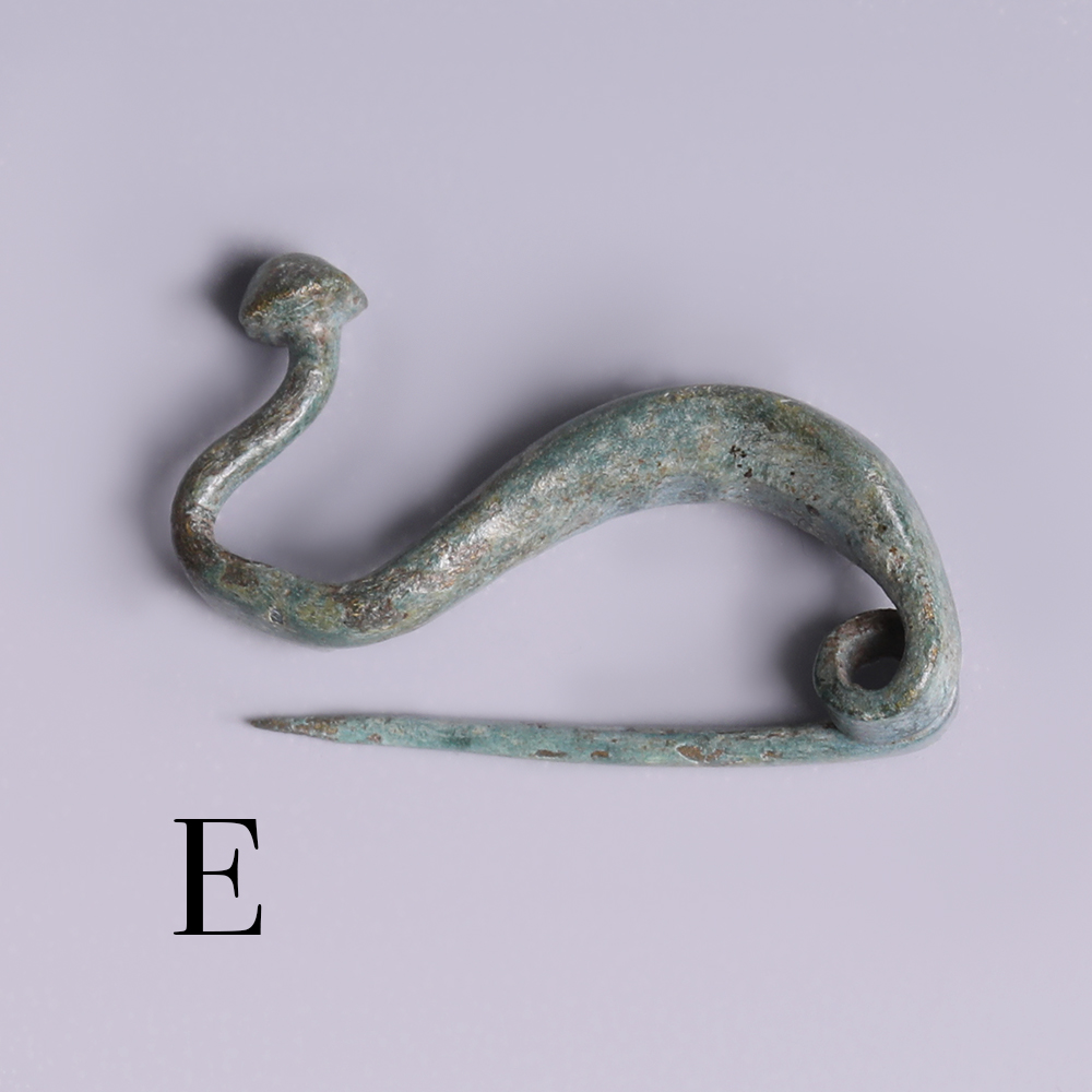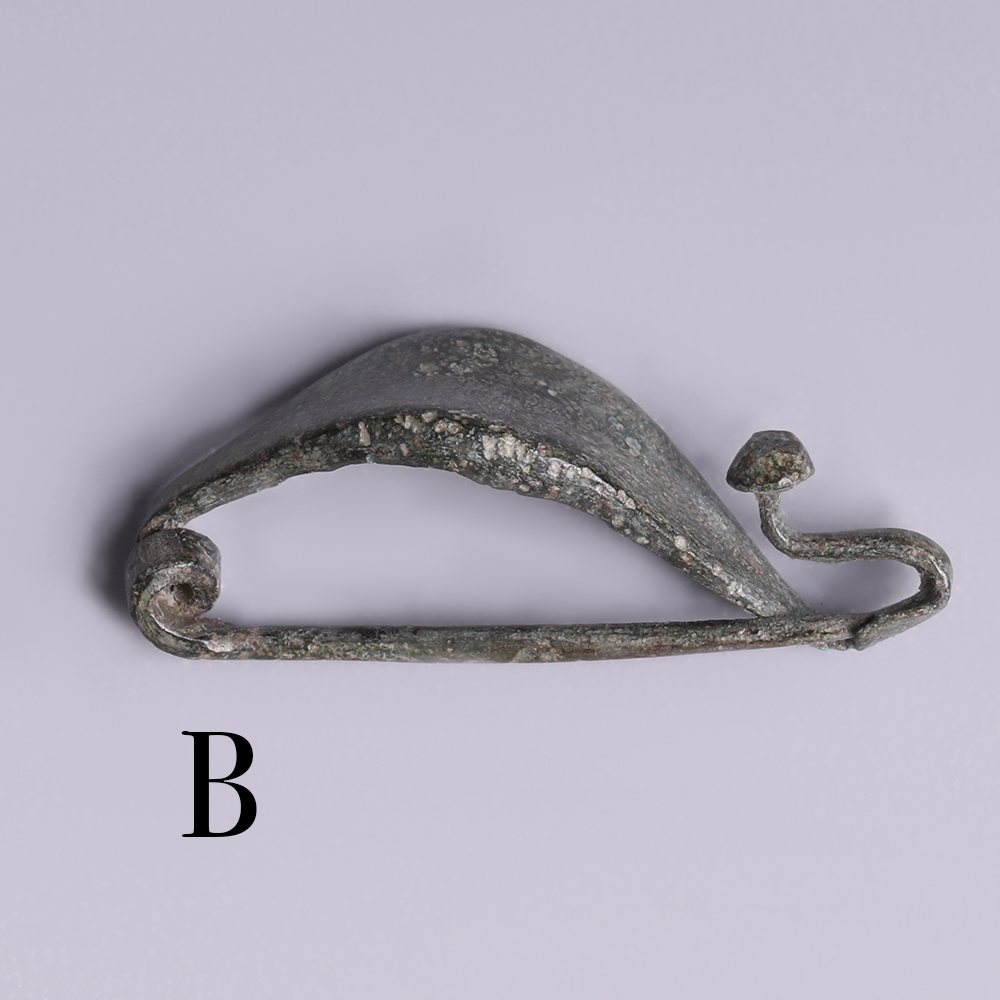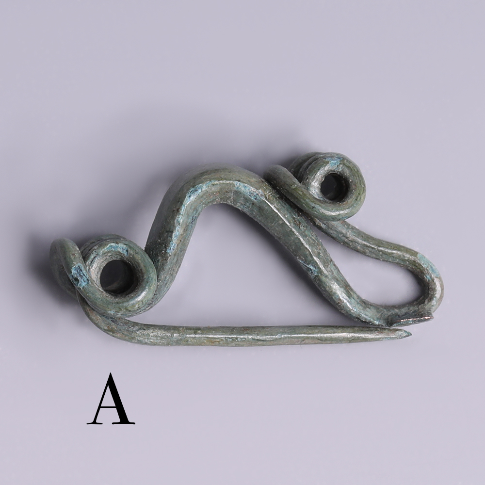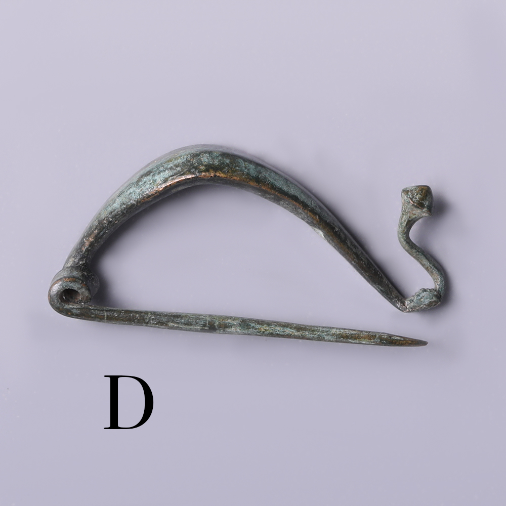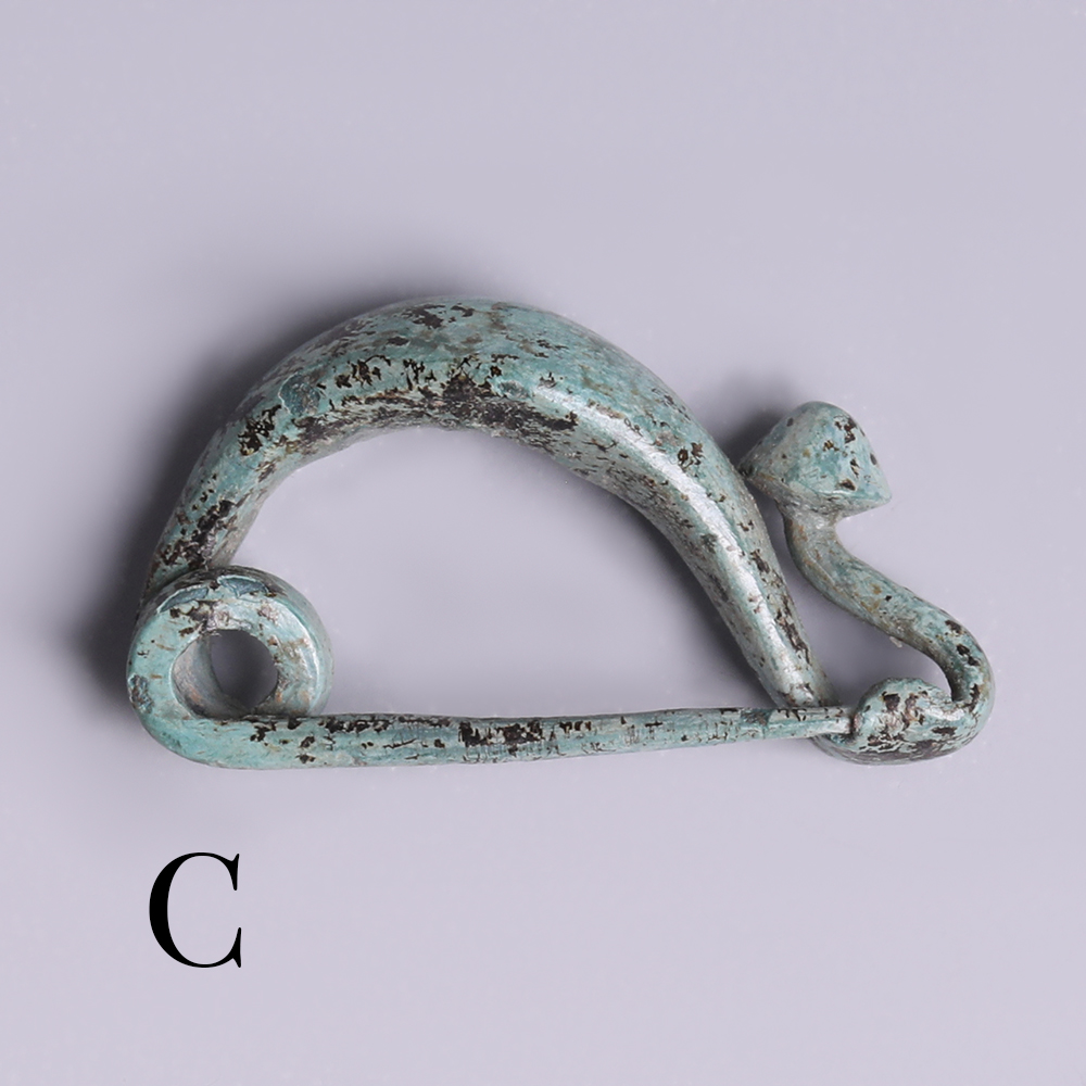 The best modern English translation of the Latin term fibulae would most likely be brooches. Their purpose was partly the same as brooches today, to provide a decorative adornment to an outfit. However, in an age when many garments were comprised of sheets of fabric formed into dresses and tunics through complex folding, fibulae also served the vital purpose of securing one’s clothes in place. Fibulae were made from a single piece of bronze which would be bent and twisted to create the final design, this took great skill. La tène followed a simple design of a narrow bow, a spring and an upturned foot. During this era the introduction of zoomorphic and animal brooches had also began.