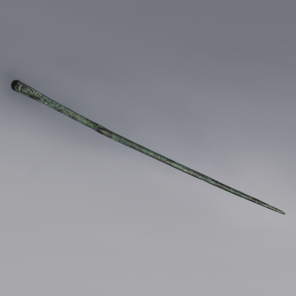 In Mesopotamia, simple garment pins appear to be some of the earliest artefacts made from metal, surpassing the tools and weapons of the area. They are superior both in terms of quantity, and in the variety of form and decoration, with basic shapes persisting for long amounts of time. This pin will have served dual functions, securing either personal garments or the hair, as required. They were superseded by the introduction of the fibula in the late eighth century BCE.