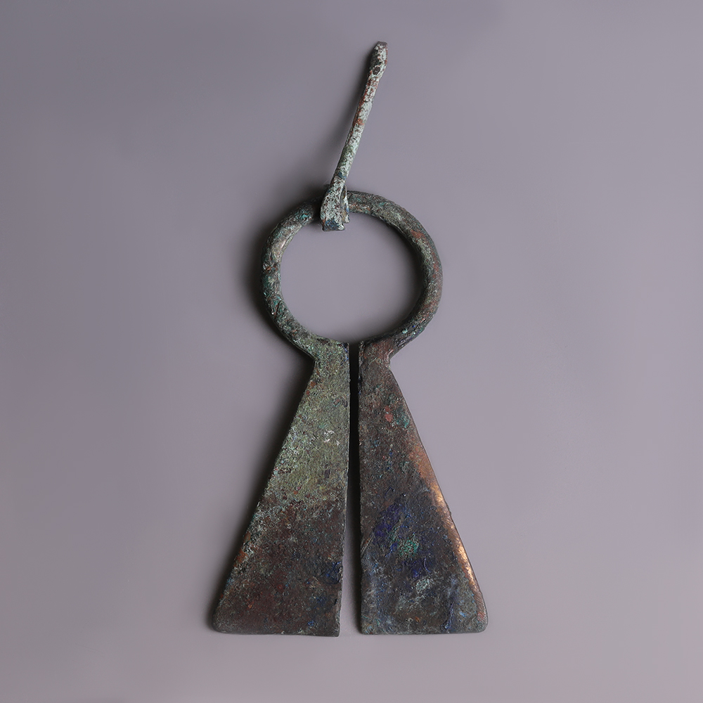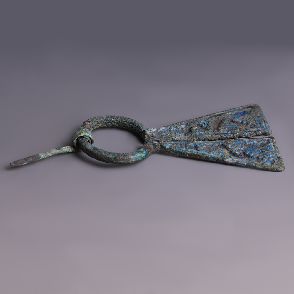 Condition: Very fine condition with original pins. Green patination covers surfaces.