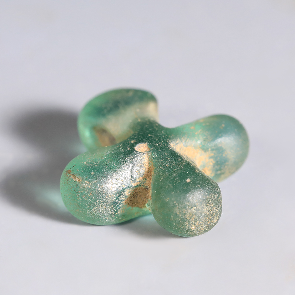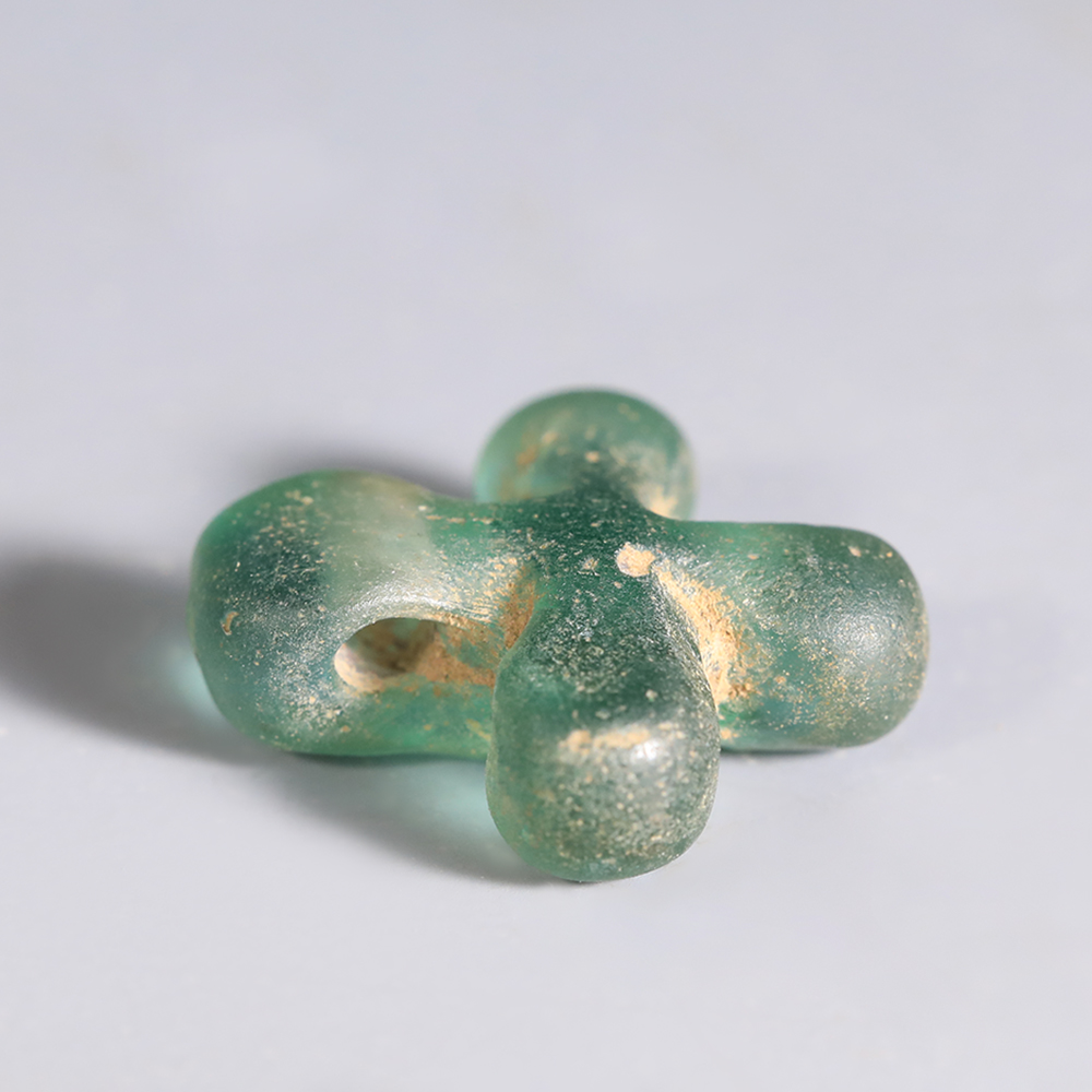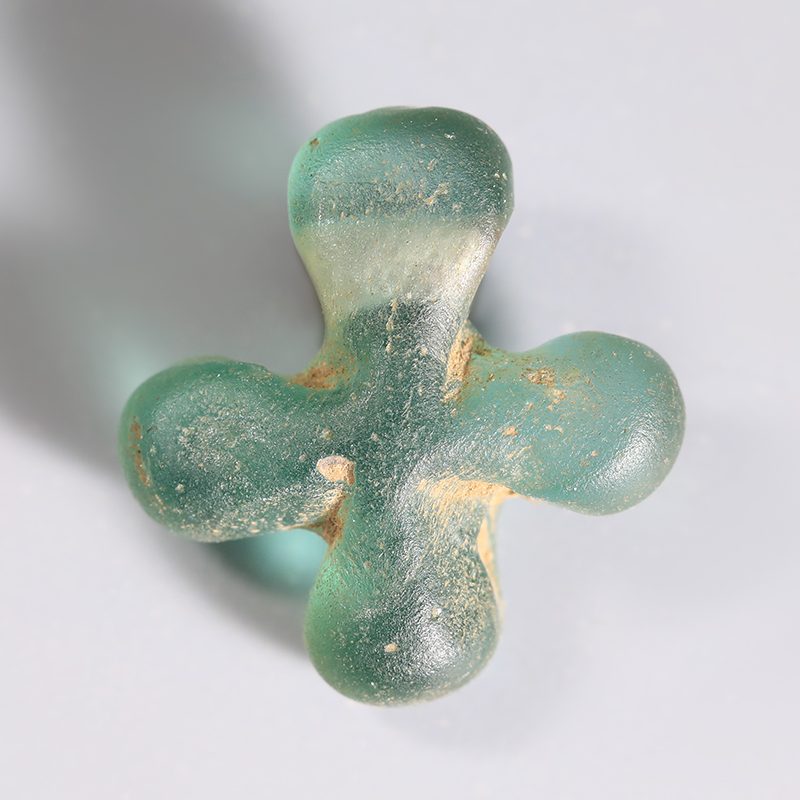The mass production of glass in Ancient Rome explains the common use of this material in jewellery-making. The ageing process of glass endows Roman glass jewellery with unique qualities. For instance, contaminants manufactured into the glass, combined with the surrounding environment over thousands of years, result in beautiful iridescence and speckling, where the glass might formerly have been transparent.