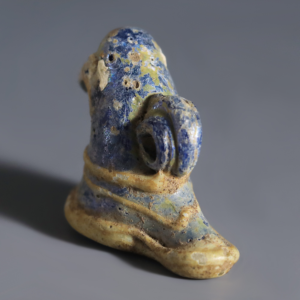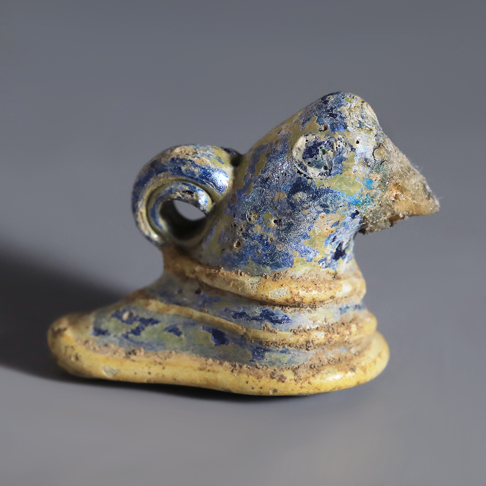 Phoenicia was a civilisation originating from the Levant, the people of Phoenicia spoke a Semitic language and purposed jewellery, as in many ancient societies, to mark social status, wealth and privilege. Ornamental objects such as glassware, including beads and pendants like this fine example, were a favourite of the Phoenicians.