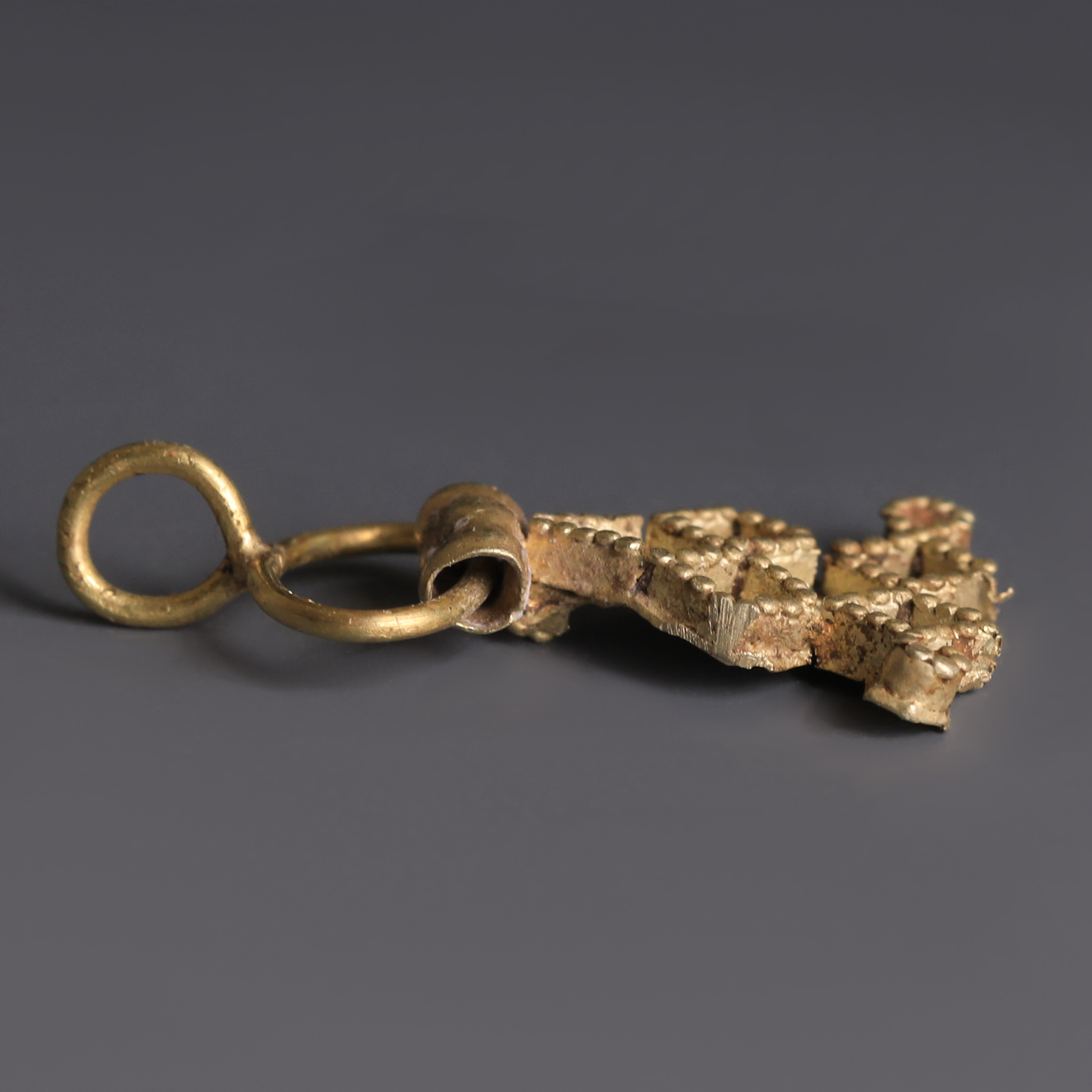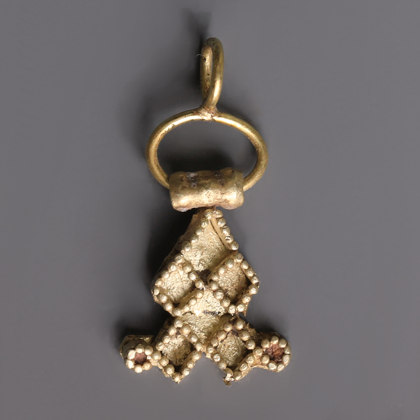 Many grand civilizations inhabited the area of Western Asia in Antiquity, and their wealth and prosperity is witnessed by the very sophisticated precious metal crafting of jewellery. Gold would have been hammered down to a thin layer and manipulated into different shapes. Gold, electrum and silver jewellery would have featured gold granules, glass and semi-precious stone inlays and detailed engravings. Fine granulation, as we can see on this item, along with filigree, were at the centre of Near Eastern and Western Asiatic jewellery production and were later adopted by the Greeks, Etruscans and Romans.