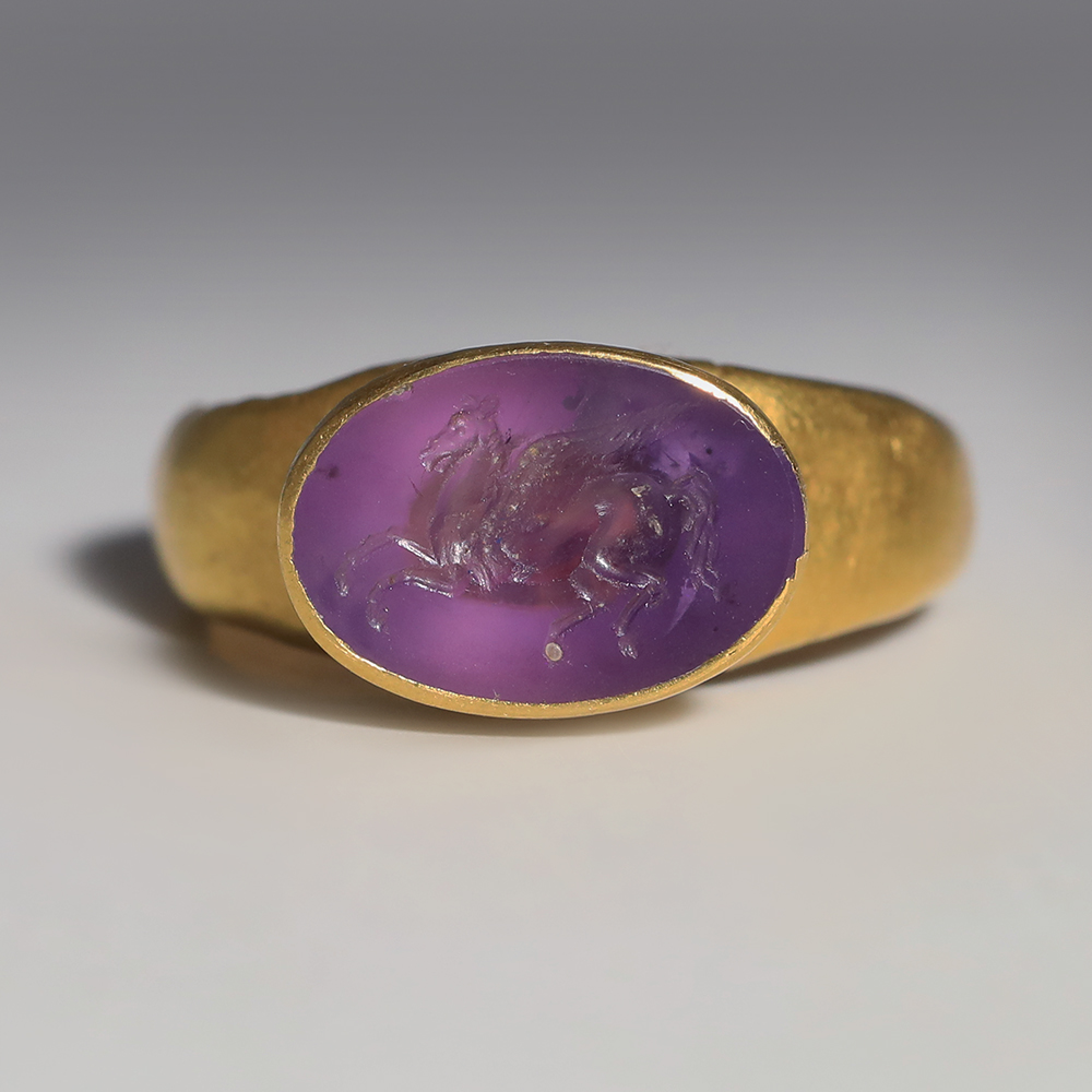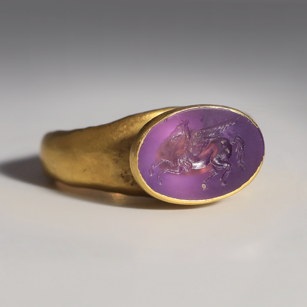The term intaglio refers to a small image that has been engraved into a gemstone and is usually set in a piece of jewellery, most commonly a ring. Such artistic form has its origin in Sumer in the 4th millennium BC, with the appearance of cylinder and stamp seals, whereby decorations and patterns were engraved into soft stones.