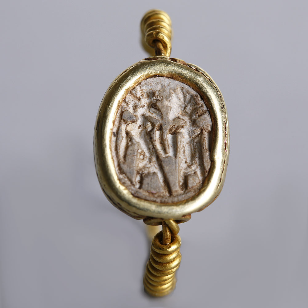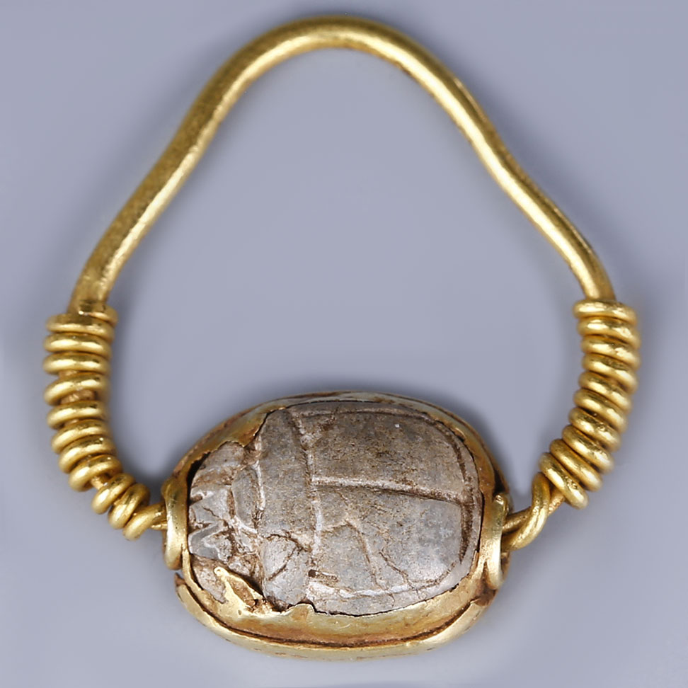 The swivel ring has origins in both Phoenicia and Egypt and was an extremely popular accessory across the Mediterranean basin in Antiquity. Similar items have been found in Cyprus, Greece and Etruria, as well as in Egypt.
