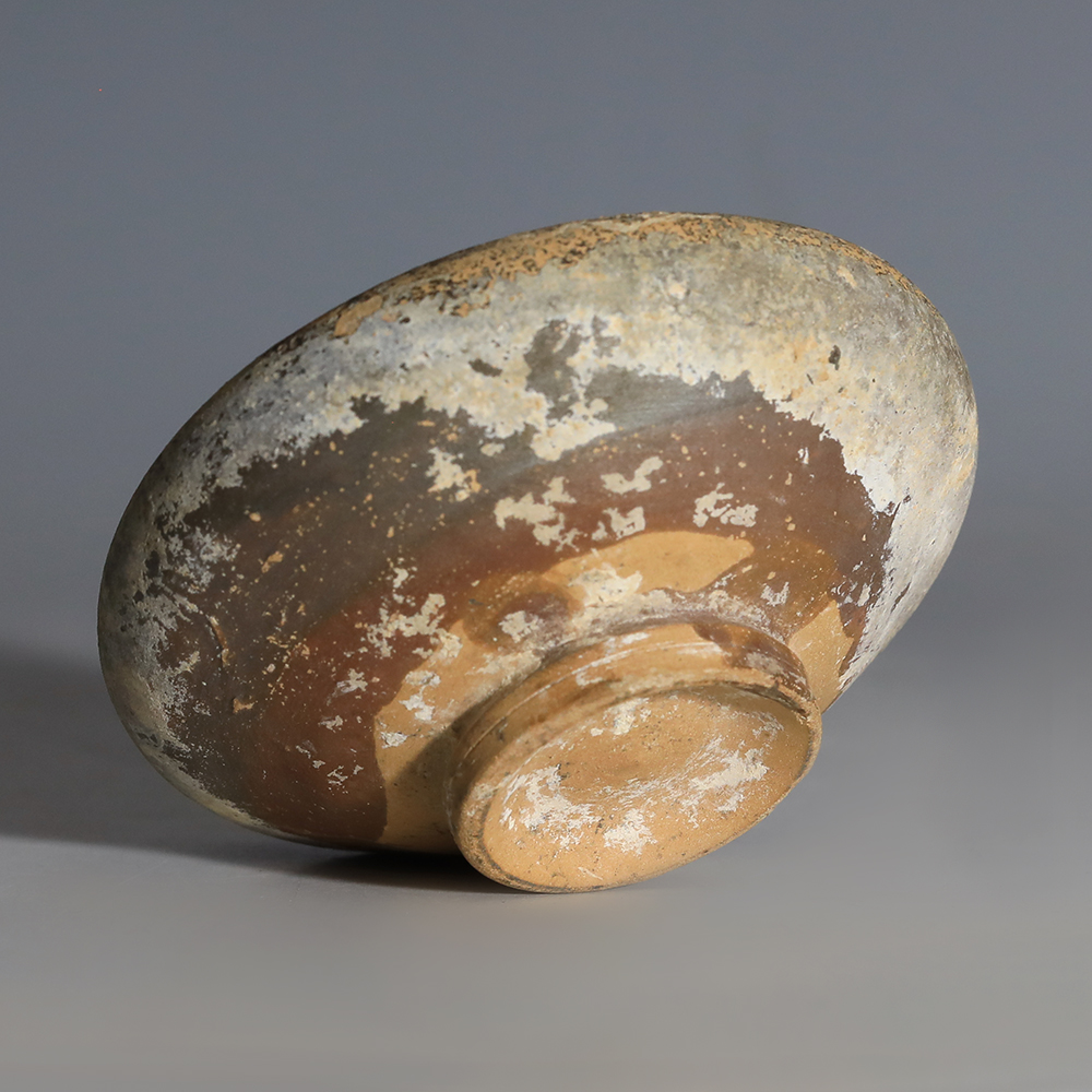 The Hellenistic period spans the period of Mediterranean history between the death of Alexander the Great in 323 BC and the emergence of the Roman Empire. It sits between Classical Greece and Roman Greece. The term ‘Hellenistic’ originated from the word Hellas (Ἑλλάς, Ellás) another recognised name for Greece. This period was characterised by a new Greek colonisation, mixing the Hellenistic culture with that of Western Asian, Northeastern African, and Southwestern Asian. Simply decorated or unadorned, handles and footless vessels of similar shape have a long tradition within the Mediterranean basin, with examples also recovered in the Near Eastern regions.
