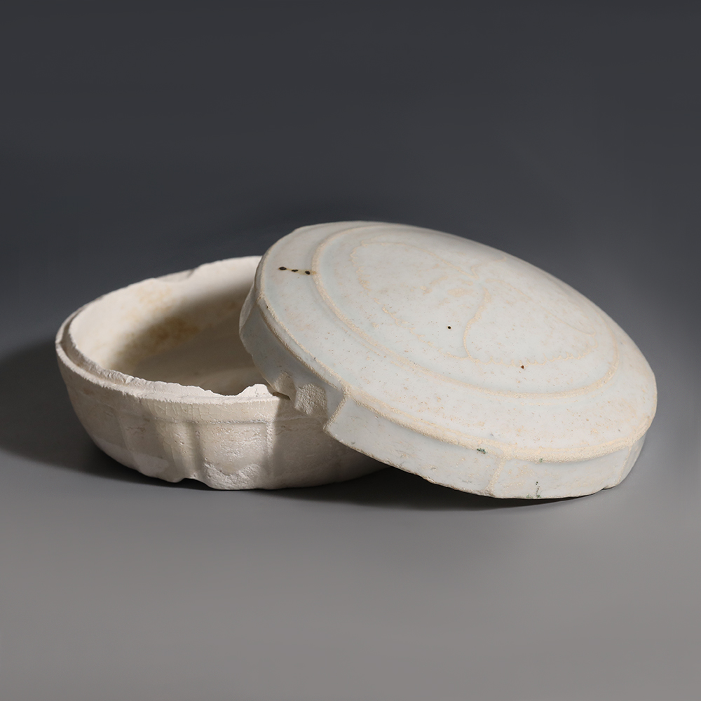 Qingbai ware was a type of ceramic produced during the Song Dynasty. During the creating process, the white porcelain was fired with a glaze that resulted in a subtle blue/green tint. Within the kiln, pine wood was used as the power which in turn reduced the atmosphere allowing for the slight colour. This technique was used for many pieces of tableware, including teapots, plates and small boxes such as this example.