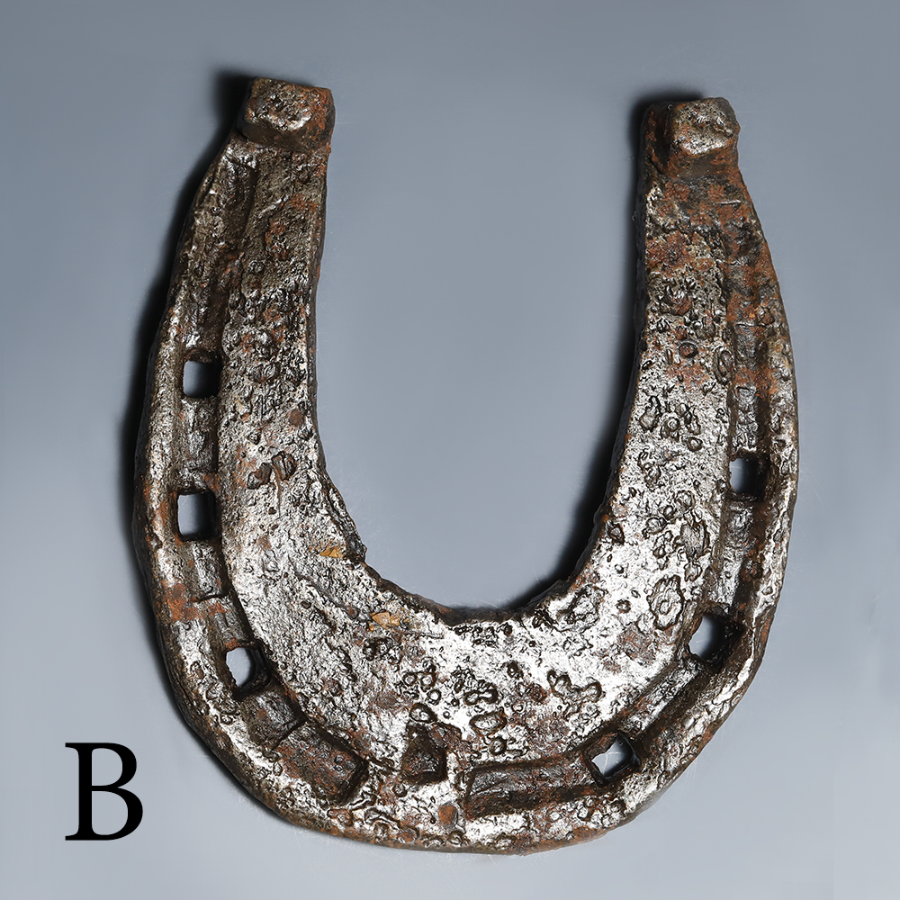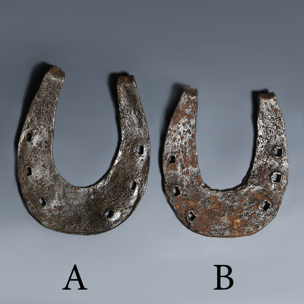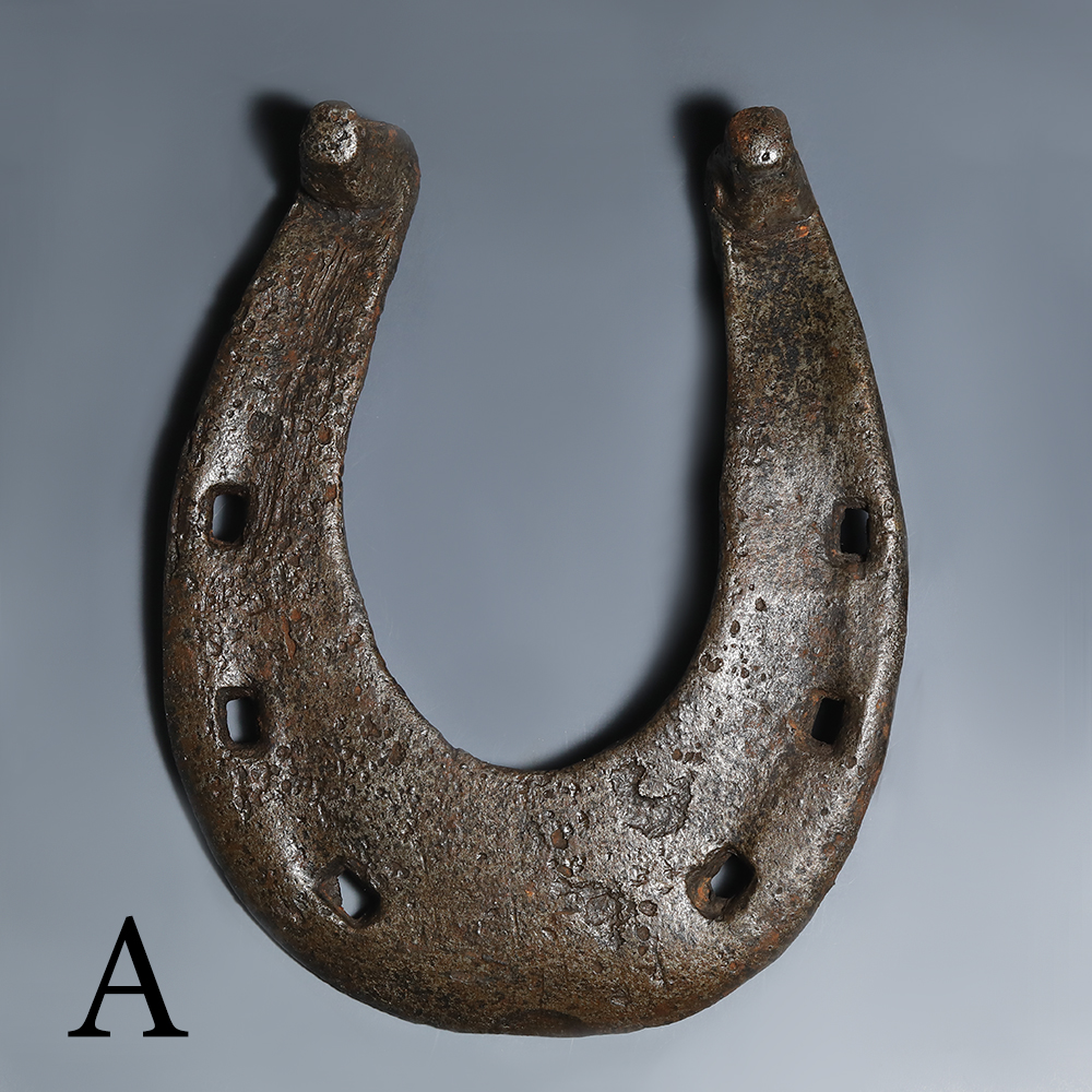 Most Ancient Roman horse shoes feature six nail-holes with some particularly large ones requiring eight. The addition of crampons or toe-pieces as well as caulkins and a groove indicates advancement in this particular craftsmanship.