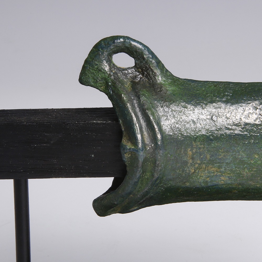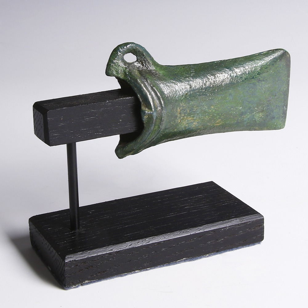 European Bronze Age farmers differed from their stone-cutting predecessors – they used horses and chariots to work; kept flocks of sheep for woollen clothing; and used bronze as a standard commodity of exchange. Technological development was rapid; the manufacture of tools and weapons increased; and specialised equipment emerged for shaving, woodworking, and metalworking. Axes such as this one would have been used primarily for clearing woodland and for shaping timber, but would also have proved useful in battles.