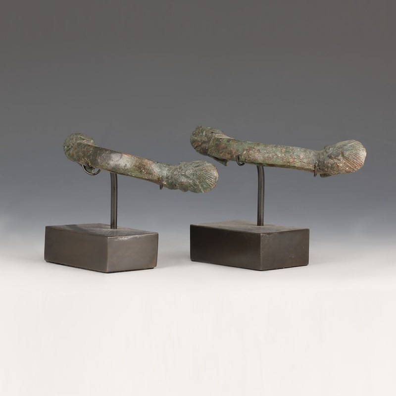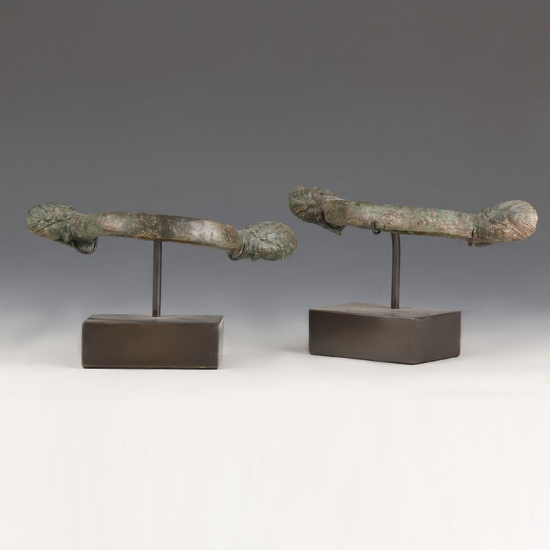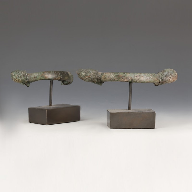 Such handles would probably have been affixed to a vessel, most likely also made of bronze. The motif of the drunken satyr might suggest that this vessel had a role in the symposium (a male drinking party).