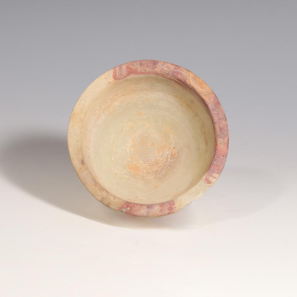 In Ancient Egypt, alabaster jars were used as containers for ointment, perfume, and other cosmetic products, such as kohl. The alabaster used by the ancient civilisations in the wider Middle East (which includes Egypt and Mesopotamia) is also referred to as ‘oriental alabaster’, which is a type of calcite. Alabaster was commonly used in Ancient Egypt for decoration as it was easy to carve and could be treated in such a way that it resembled marble (a much harder material to work with). Although its soft and porous features made it easier to carve, this also meant that it would not survive for significant periods of time when exposed to the elements. The name ‘alabaster’ is thought to have derived from the Ancient Egyptian ‘a-labaste’, which refers to the vessels of the goddess, Bast.